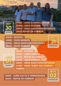 - Samedi 14:30 – Evangélisation / Cours de Théologie
